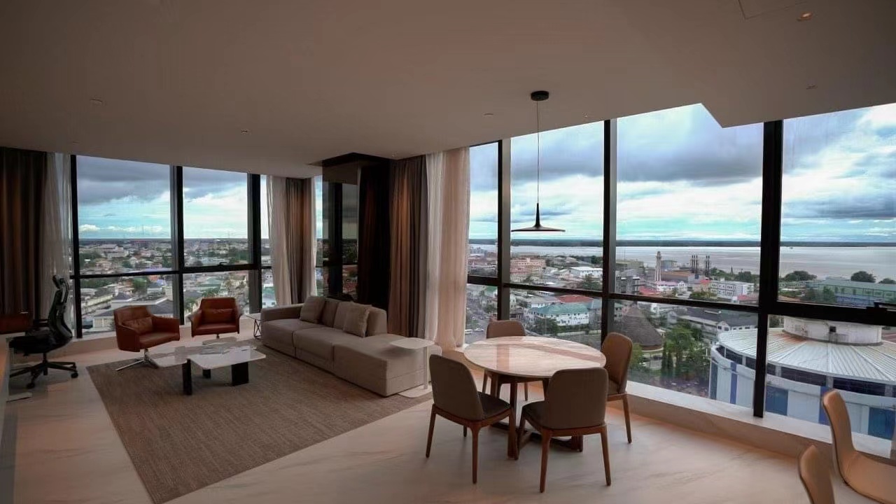 2022年7月底,在南美洲北部的圭亞那首都喬治敦市,面朝大西洋,一個采用綠色理念設(shè)計的地標(biāo)性建筑,飛馬酒店,在眾人期待中順利交付并舉行開業(yè)典禮。