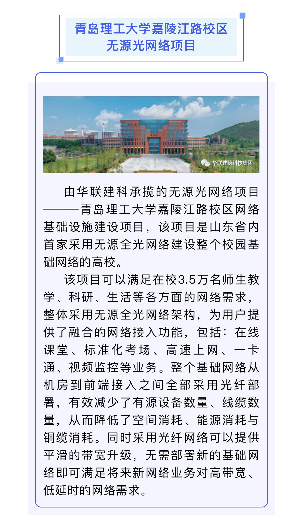 華聯(lián)建科無(wú)源光網(wǎng)絡(luò)經(jīng)典案例—青島理工大學(xué)嘉陵江路校區(qū)
